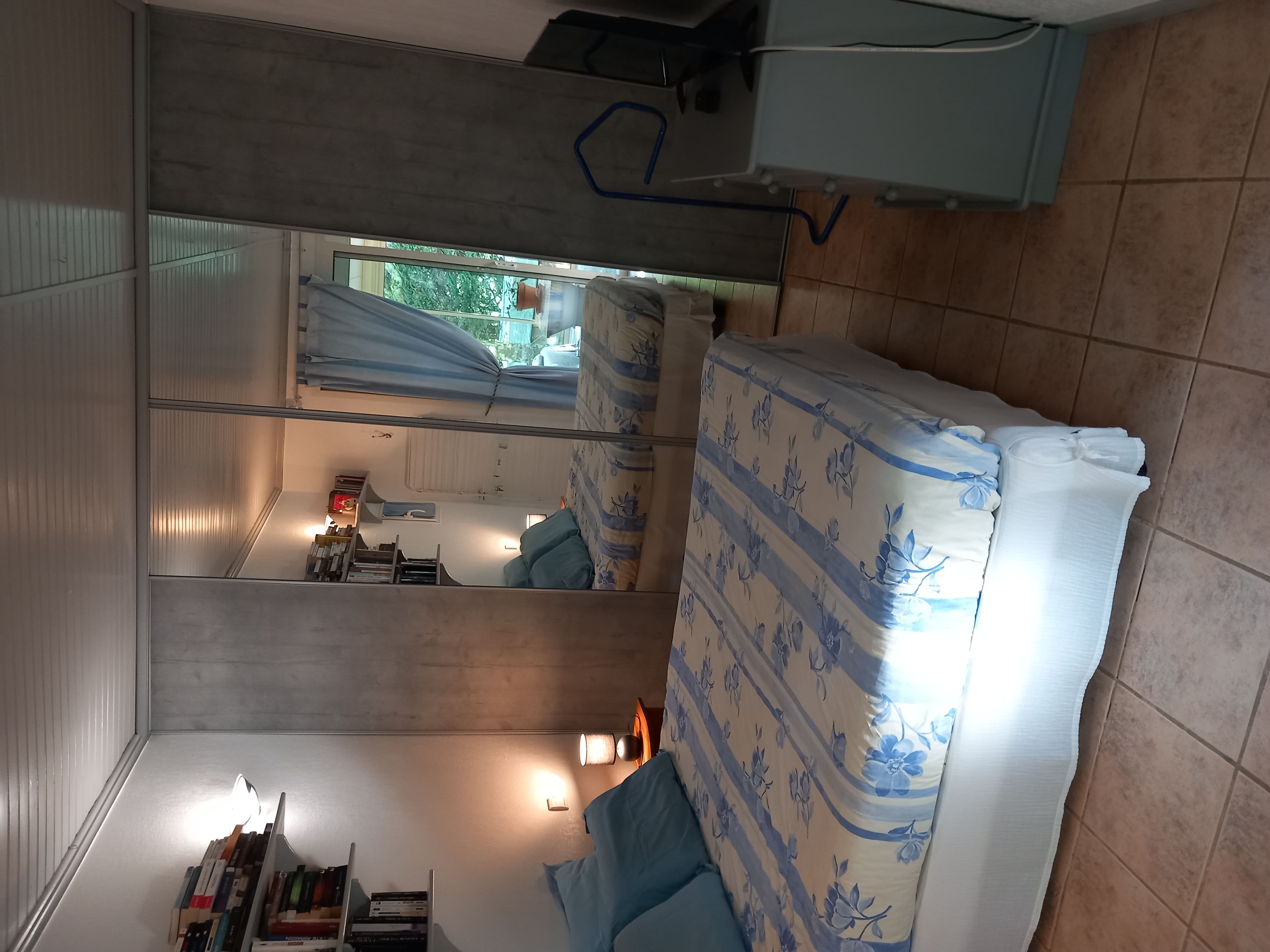 lumineux et convivial, avec une grande table pour six personnes, télévision, clic-clac confortable et table basse pour vos moments de détente.